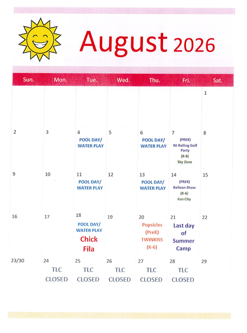 Summer Camp Calendar